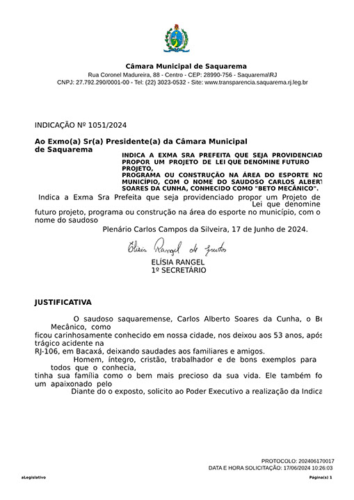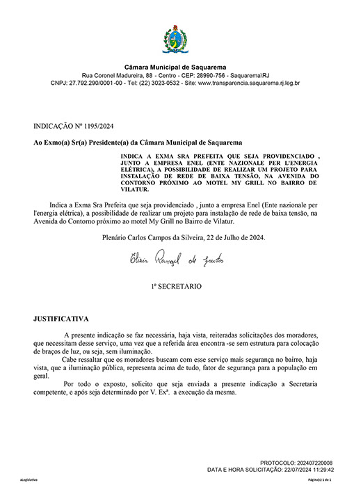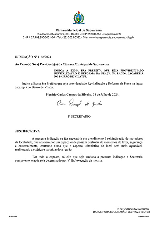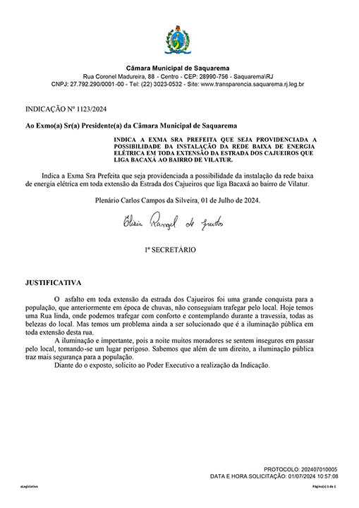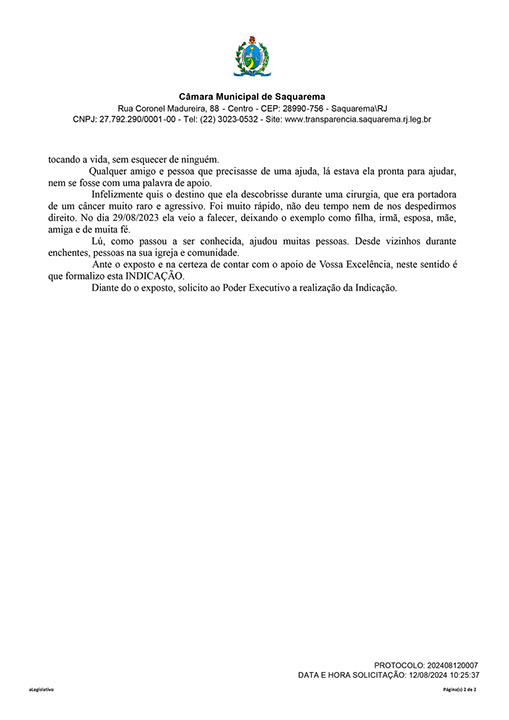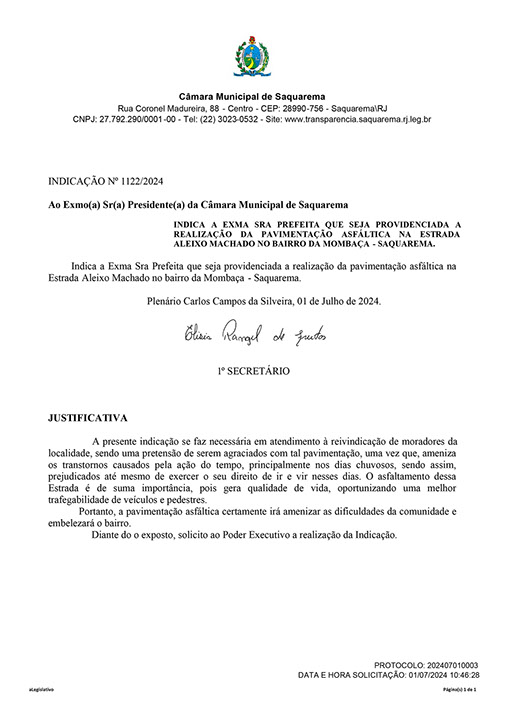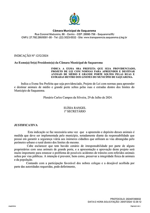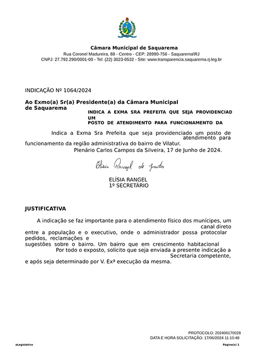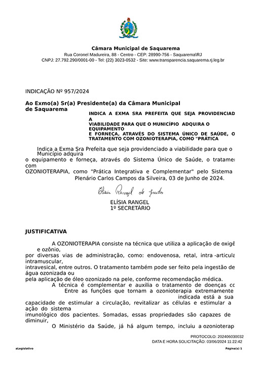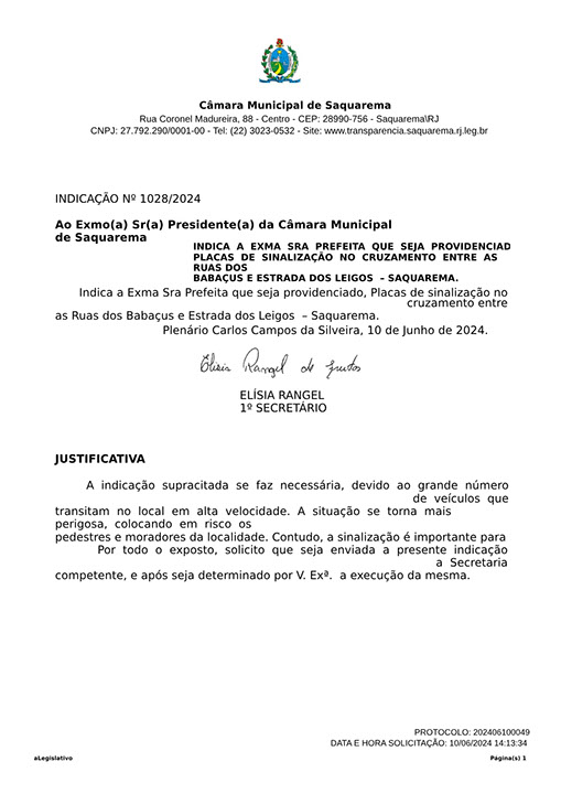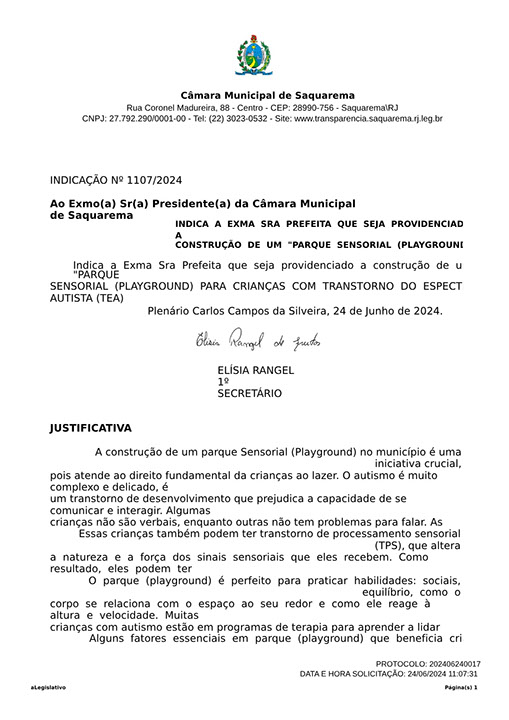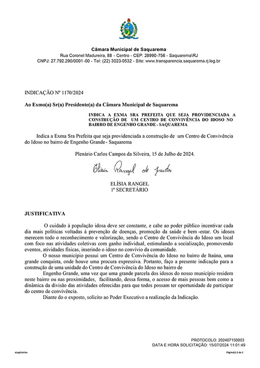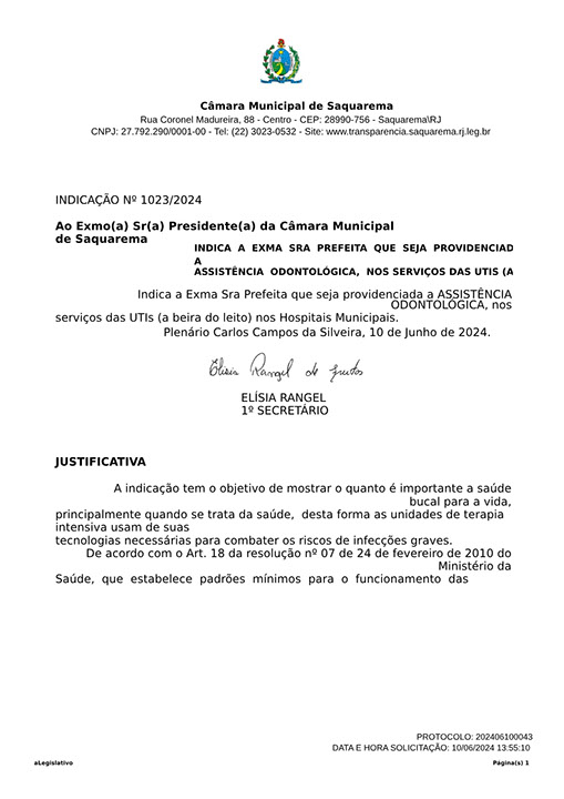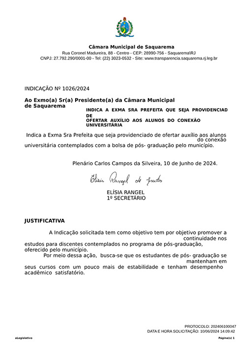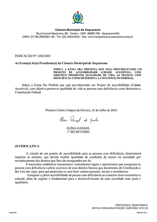Estão presentes aqui indicações apresentadas por iniciativa de Elisia Rangel durante o seu mandato vigente como Vereadora do Município de Saquarema, na Região dos Lagos do estado do Rio de Janeiro.