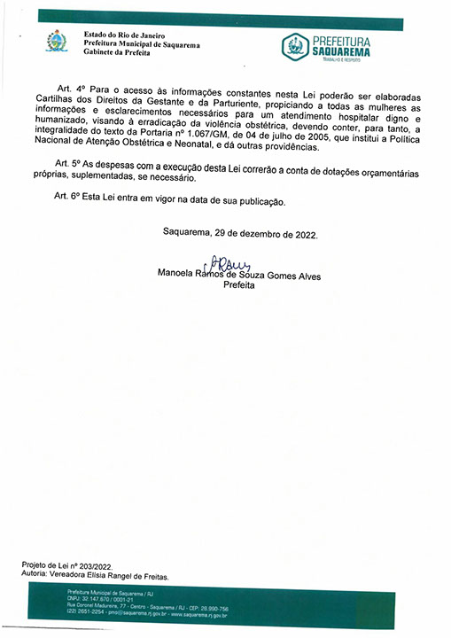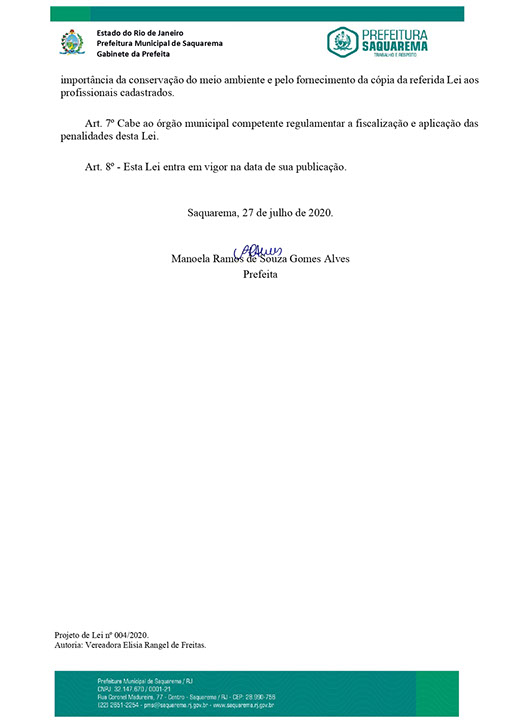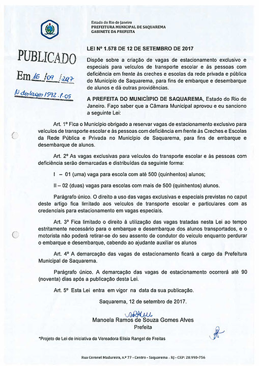 Estão presentes aqui projetos de leis sancionadas pelo poder executivo das quais são de iniciativa de Elisia Rangel durante o seu mandato vigente como Vereadora do Município de Saquarema, na Região dos Lagos do estado do Rio de Janeiro.